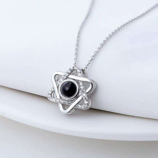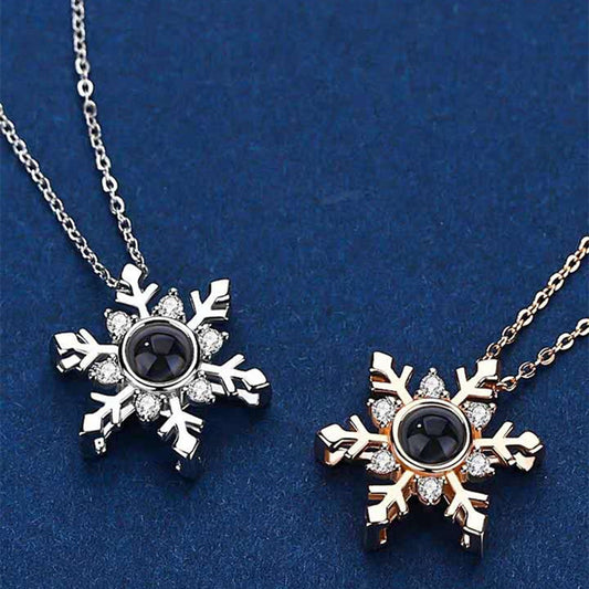 "100 Languages 'I Love You' Snowflake Necklace, featuring a nano projection pendant. Perfect for Valentine's or birthday gifts."
