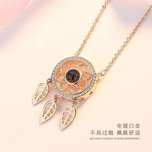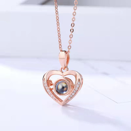 "100 Languages 'I Love You' Projection Necklace, trendy pendant, perfect Valentine's Day gift for her."